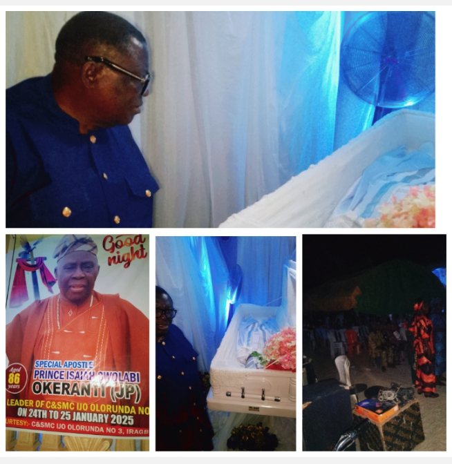 Today, on the 24th of January 2025, Senator Felix Kolawole Ogunwale paid his last respects to the late Apostle Isaiah Owolabi Okeranti (jp) during the wake-keeping service. Senator Felix Kolawole Ogunwale extended his heartfelt condolences to the bereaved and prayed that we all may live long to fulfill God’s destiny for our lives. He was present at the residence in Iragbiji, Boripe local government of Osun state on this day.